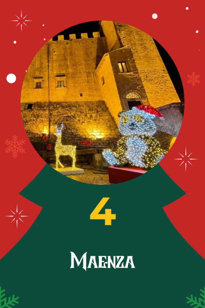 Per la prossima città da visitare per respirare questo clima natalizio ci spostiamo a Maenza, nel cuore dei Monti Lepini. Qui, tra le stradine del centro storico e i paesaggi naturali circostanti, si trova il famoso Castello di Babbo Natale, una destinazione magica per grandi e piccini, dove poter ammirare presepi, decorazioni natalizie, mercatini, spettacoli, laboratori creativi e tante altre sorprese legate alla festività più amata dell’anno.