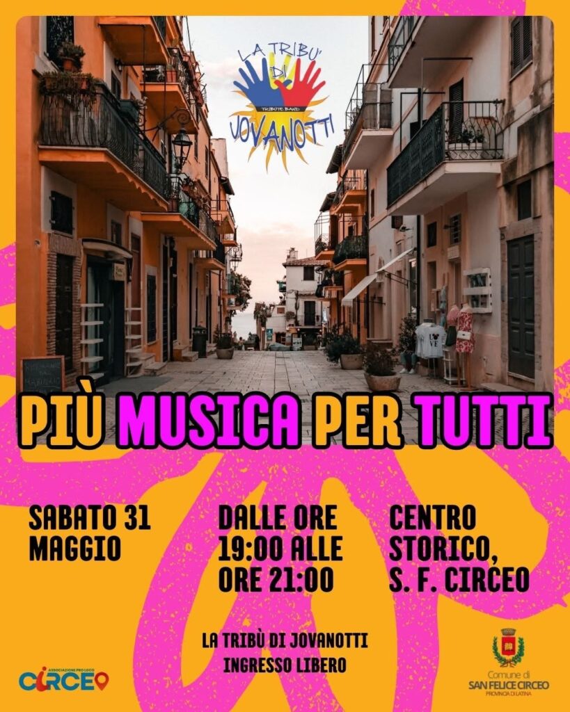 Due ore di buona musica, energia e buonumore nel cuore del centro storico di San Felice Circeo, con le hit indimenticabili di Jovanotti che risuoneranno grazie alla tribute band “La Tribù di Jovanotti”.