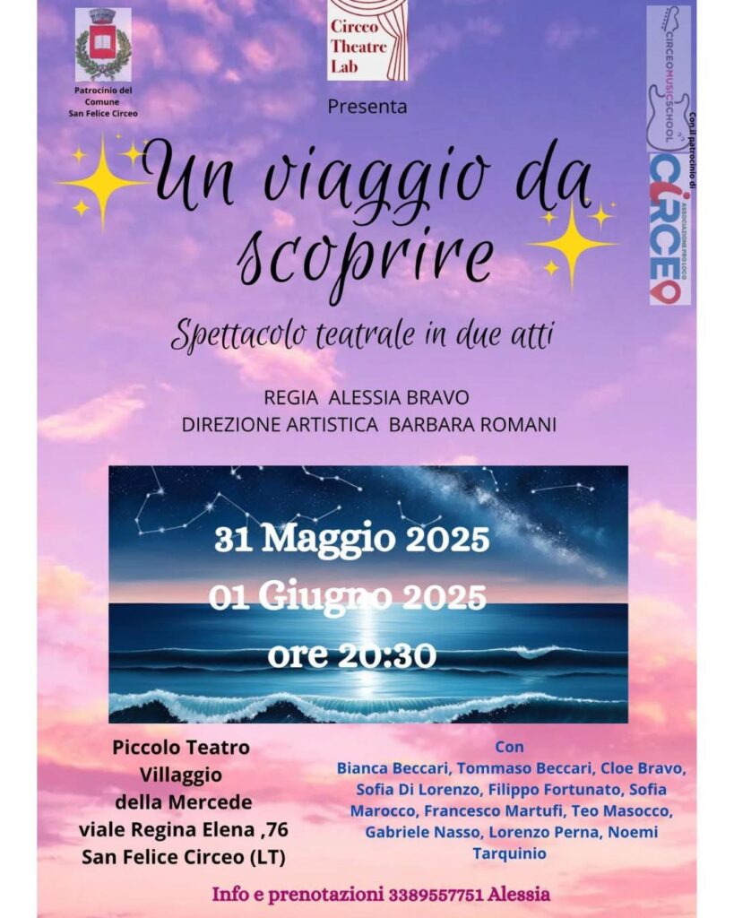 Uno spettacolo teatrale adatto a grandi e piccini organizzato dal “Circeo Theatre Lab”: Pinocchio e Vaiana accompagneranno questi giovani attori in un viaggio alla scoperta di sé.